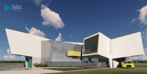 No primeiro nível superior estão as suítes de solteiro, o home e a escada de acesso à laje de teto, onde temos uma hidromassagem e um terraço jardim . As suítes de solteiro estão separadas da suíte master, situada na outra extremidade da casa, em um nível um pouco mais elevado e acessada por meio de uma passarela que corta o vazio do pé direito duplo das salas . É interessante destacar o posicionamento dos quartos de forma quase perpendicular ao corpo principal da casa e em balanço, servindo como proteção de parada de veículo no térreo, um ao acesso social e o outro ao acesso de serviço . Sobre a piscina temos uma sacada à la Frank L . Right . As paredes laterais junto à rampa de acesso aos quartos e do outro lado junto à sala de estar foram projetadas com pele de vidro do piso ao teto . A estrutura é em concreto armado, e a alvenaria em tijolos de barro furados e rebocados . A residência contém área total de 460m².
